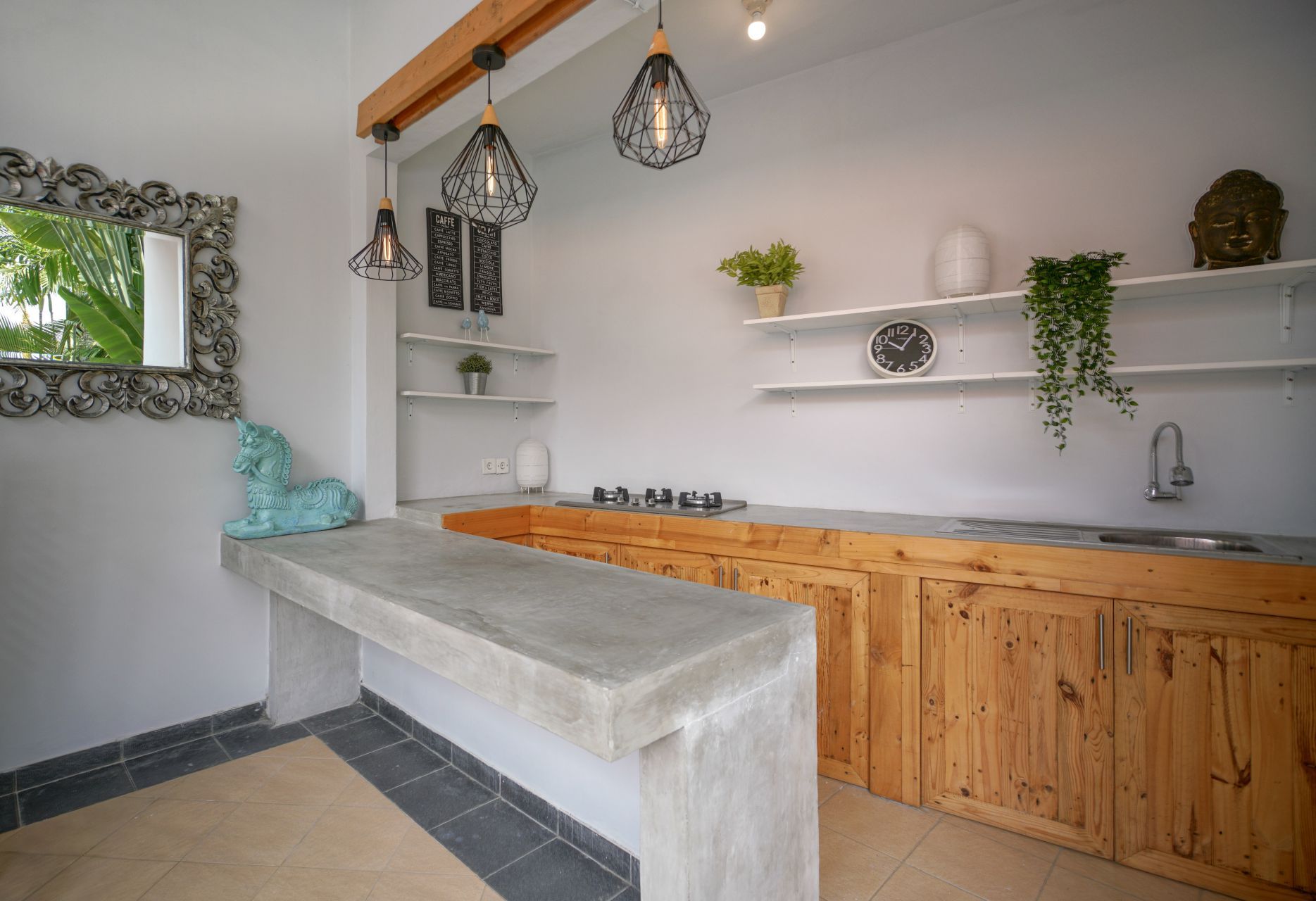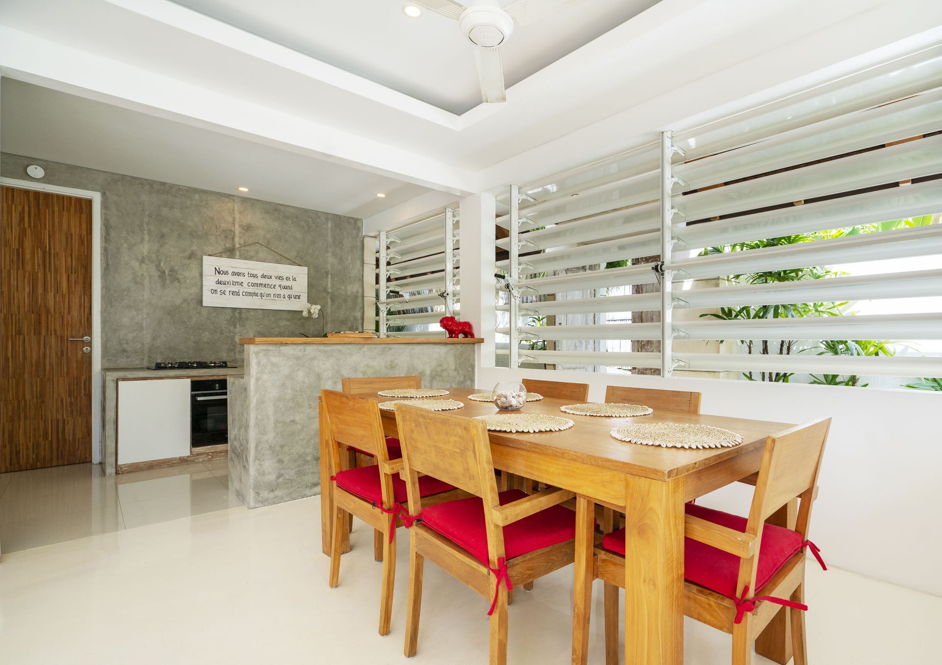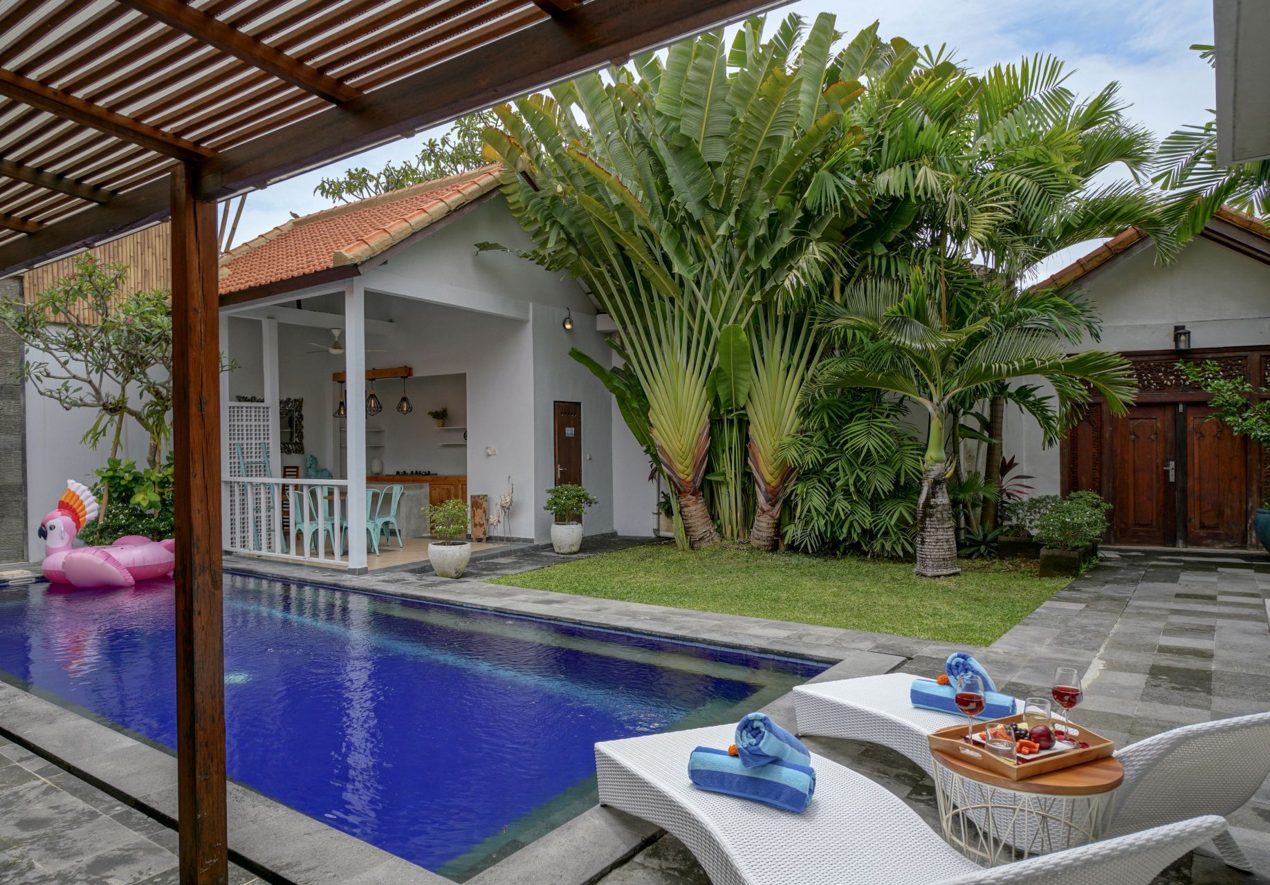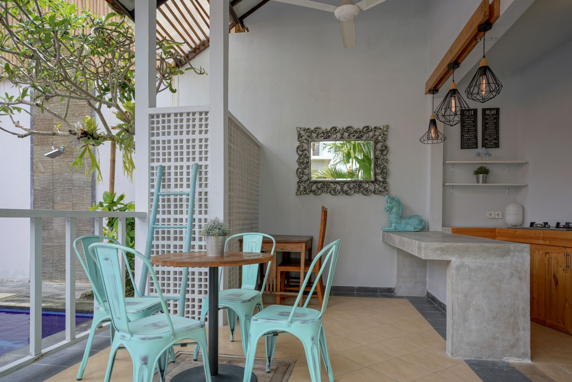 Villa "SU'KHA UMALAS" is a spacious private villa with a large surrounding area and a swimming pool. An ample living room with AC will help to hide from the scorching sun. There are two kitchens. One with AC is inside, and the other one is an open-space kitchen outside the house. Your group or family will be close to everything when you stay at this centrally-located place.