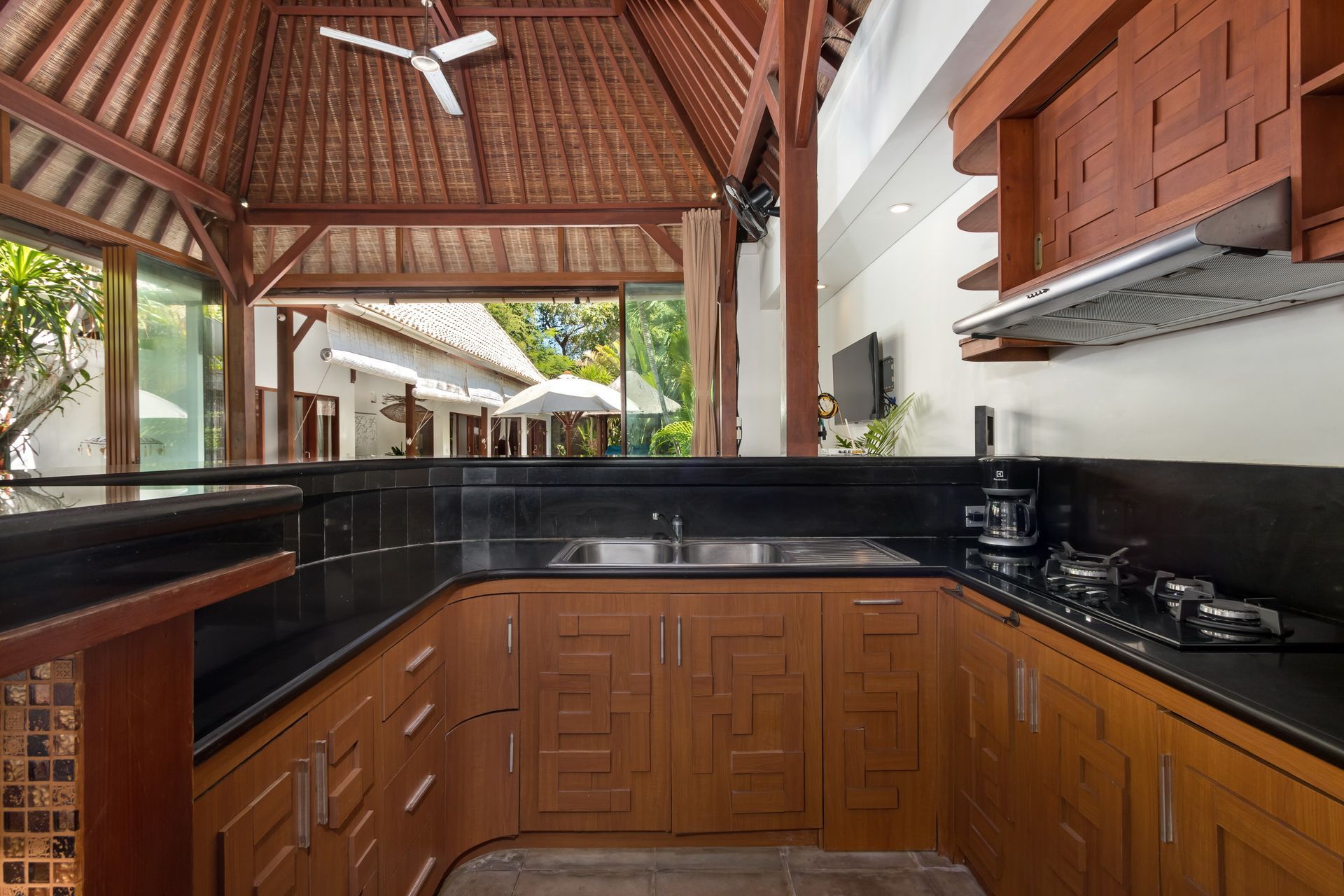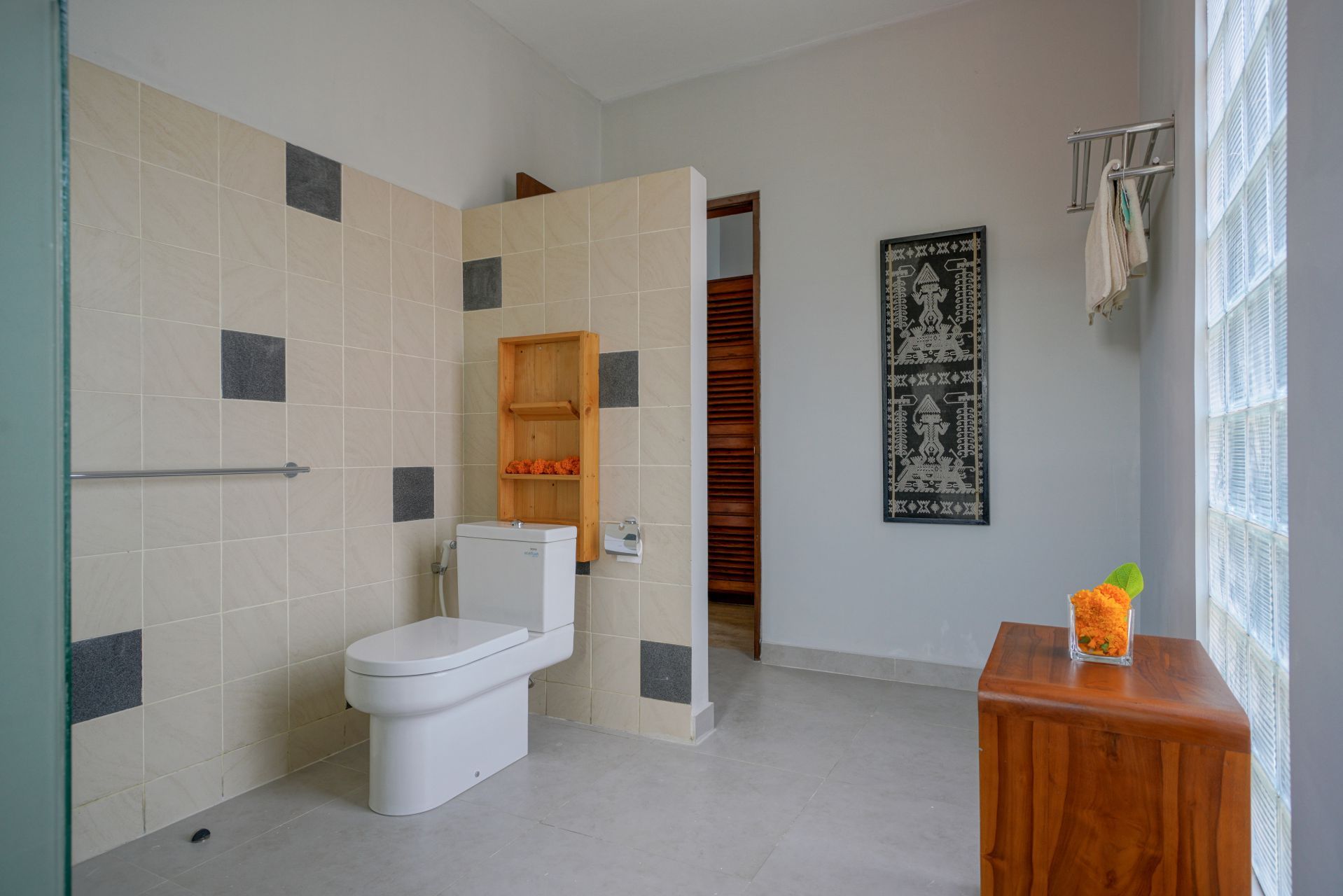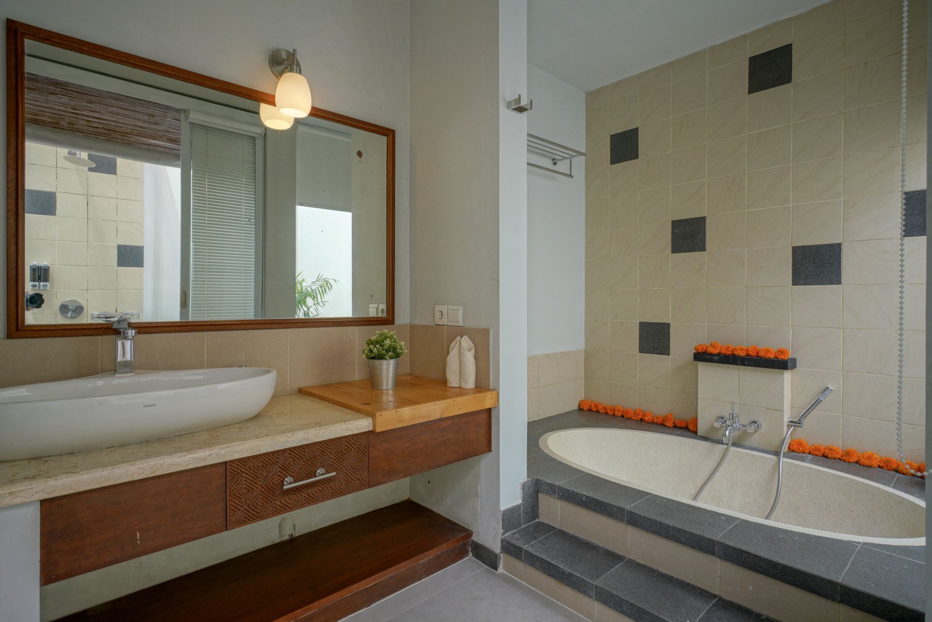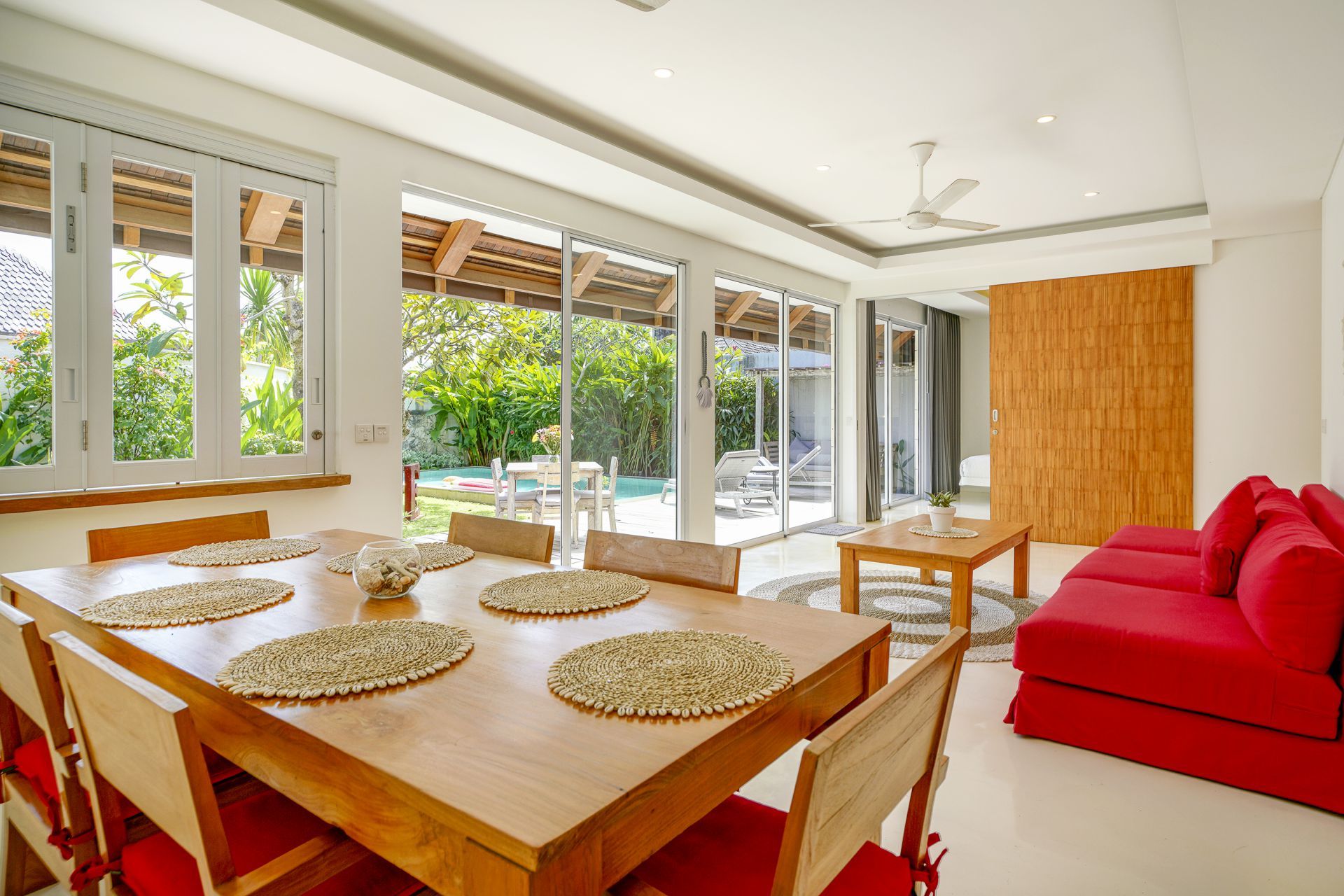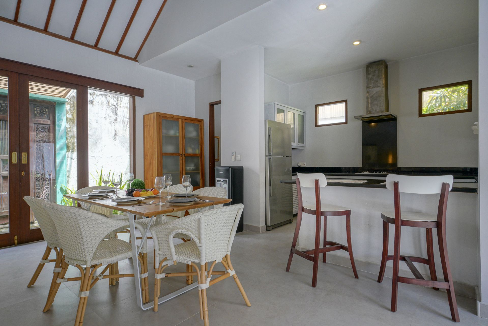 Villa "SU'KHA UMALAS" is a spacious private villa with a large surrounding area and a swimming pool. An ample living room with AC will help to hide from the scorching sun. There are two kitchens. One with AC is inside, and the other one is an open-space kitchen outside the house. Your group or family will be close to everything when you stay at this centrally-located place.